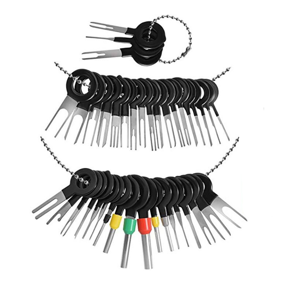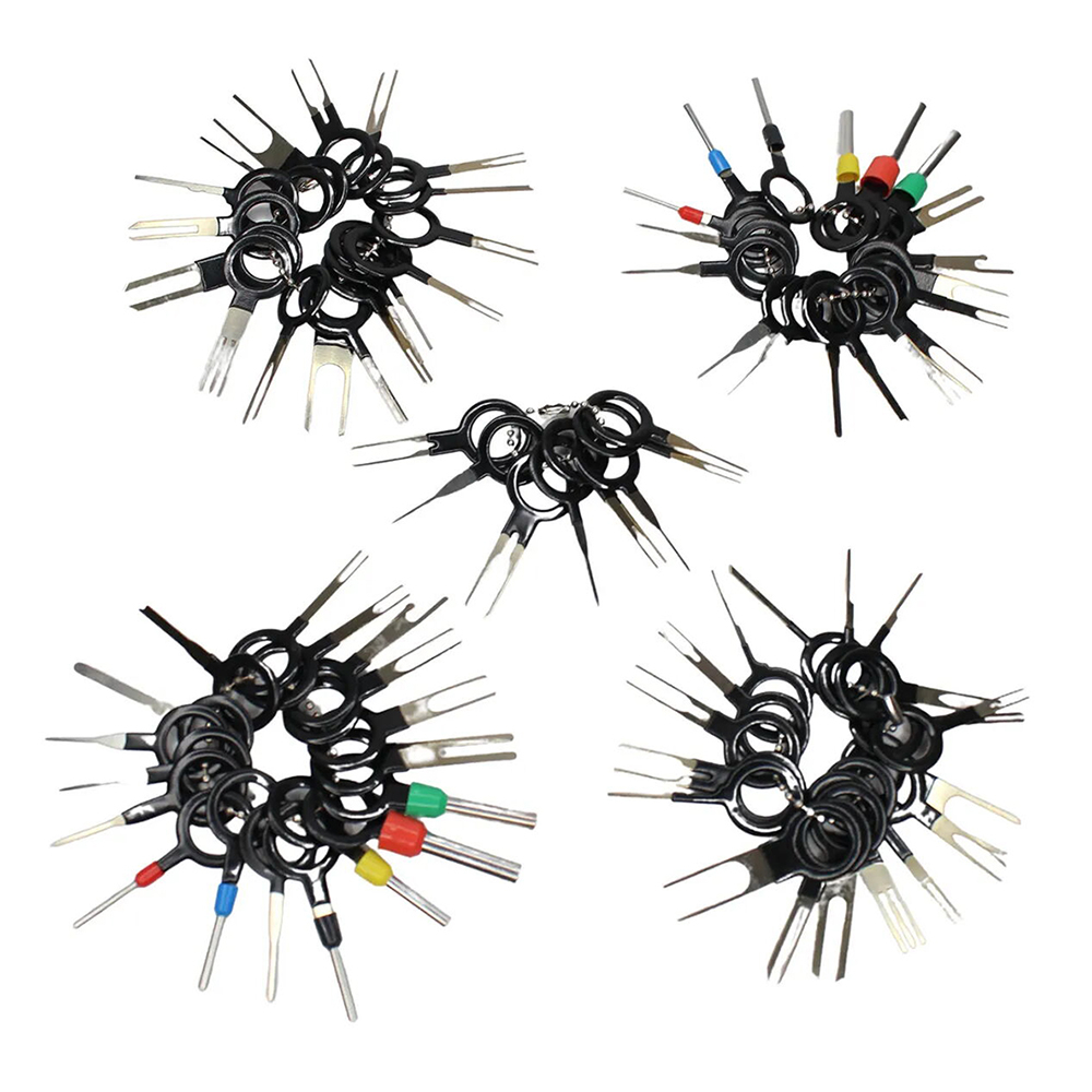 Набор для распиновки разъемов контактов Setkit 80 предметов – полезные элементы при ремонте проводки в автомобиле. Распиновщик помогает при необходимости заменить поменять пины в разъемах контактов, а также качественно, быстро и без повреждений разобрать клеммы в транспортном средстве. Экстрактор выполнен из прочного пластика и нержавеющей стали, что положительно сказывается на сроке службы. Всего в набор входит 80 различных предметов, которые выполнены в форме ключа с отверстием на рукоятке для удобного нанизывания на нить или цепь.